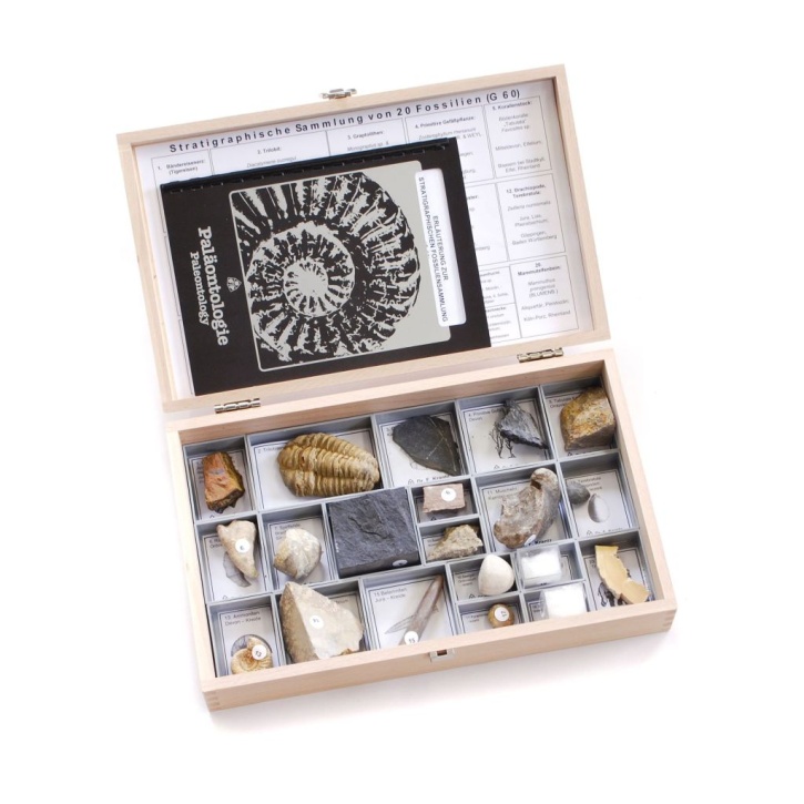 Basissammlung: 20 Fossilien im Holzkasten
