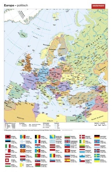 Handkarte (im 10er Set) auf Papier, Europa, Vorderseite physisch, Rückseite politisch, 40 x 64cm, 1:14 Mio