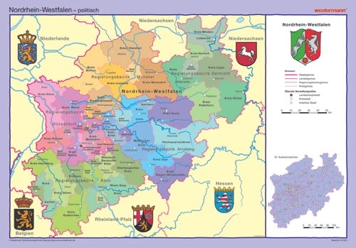 Posterkarte Nordrhein-Westfalen, physisch/politisch,