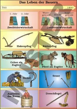 Arbeit auf dem Feld, Frondienste, Abgaben, Dreifelderwirtschaft,