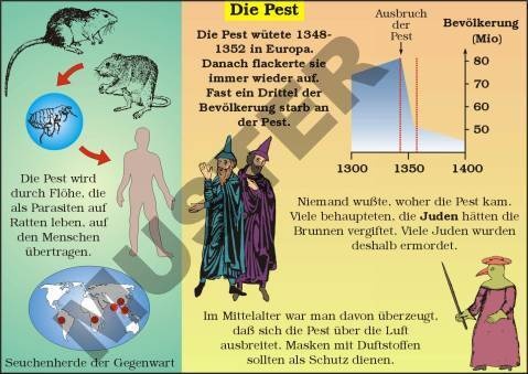 3. Die Pest: Übertragung der Pest durch Ratten, 1/3 der Bevölkerung starb an der Pest,