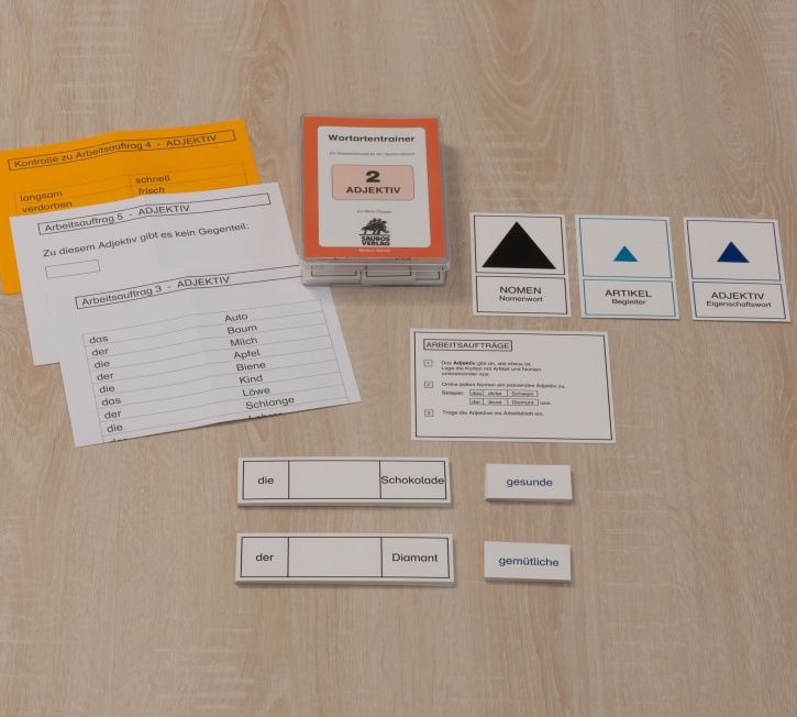 Der Wortartentrainer orientiert sich an der Methodik der Montessori-Pädagogik.