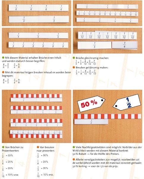 Der 1er-Streifen ist doppelt so lang wie der ½-Streifen usw. Bis zu 1/20 sind Streifen vorhanden, um Relationen zwischen den verschiedenen Brüchen und Prozenten untersuchen zu können.
