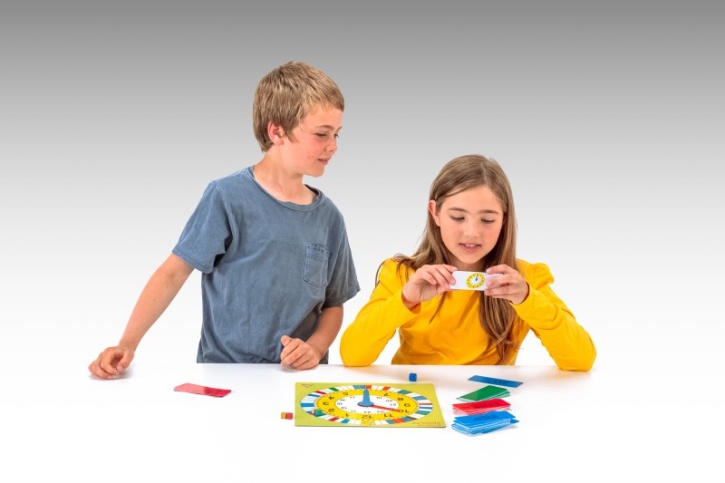 Inhalt: 1 Spielbrett mit Zeigersatz, 4 Spielsteine aus RE-Wood, 90 Aufgabenkärtchen, 1 Würfel, 1 Anleitung in deutscher Sprache.