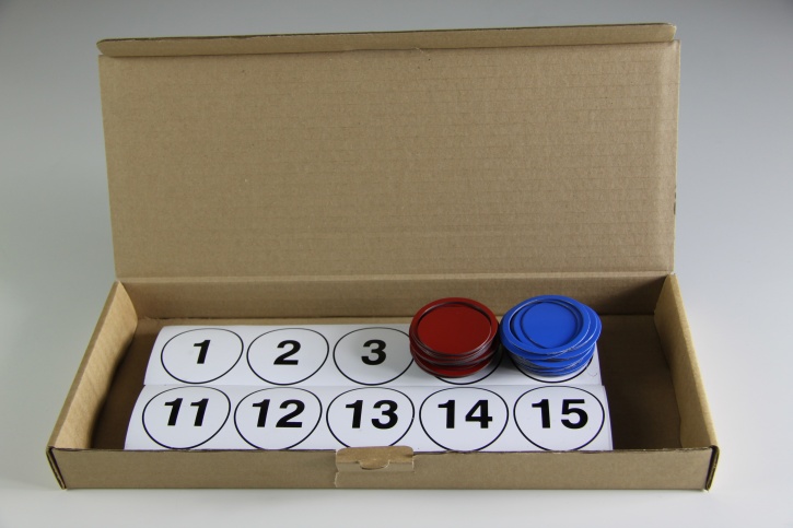 Je 20 rote und blaue magnetische Kreise und je 20 blaue und rote magnetische Ringe, Kreisdurchmesser 4 cm