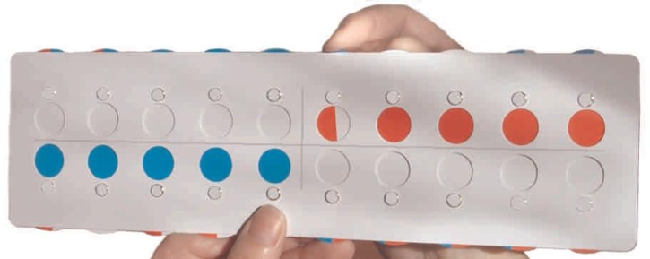 Die drehbaren Farbscheiben werden zur Einstellung der gewünschten Menge gedreht,