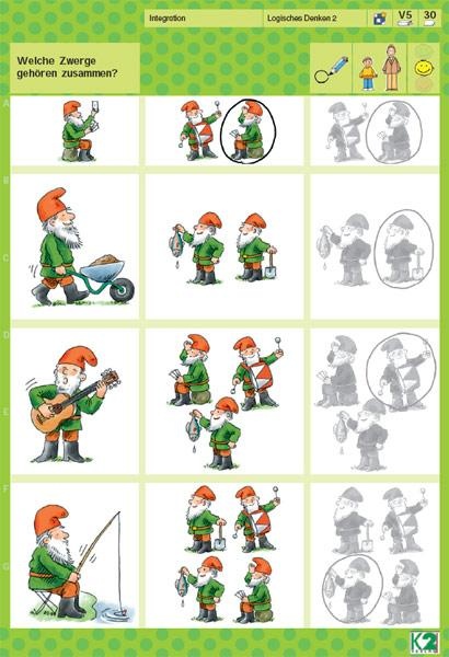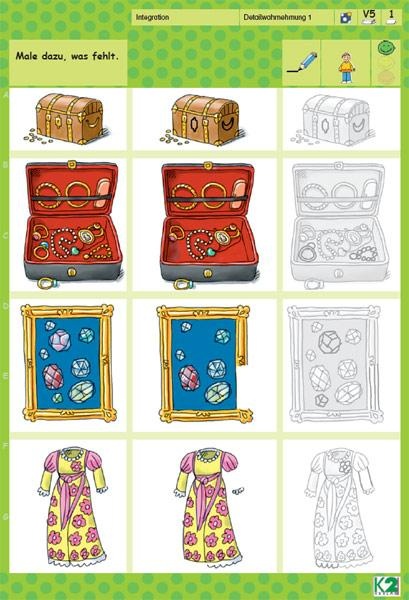 - Blick auf Details (Details zählen, Vergleichsbilder mit Unterschieden; Fehlendes einzeichnen; Symbole nachzeichnen),
