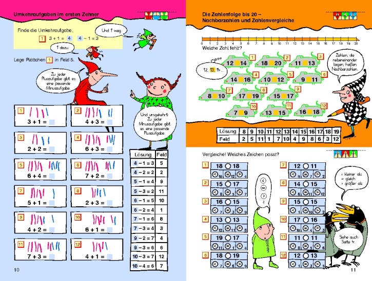 - Die inhaltliche Vielfalt mit Ergänzungsaufgaben, Umkehr- und Tauschaufgaben