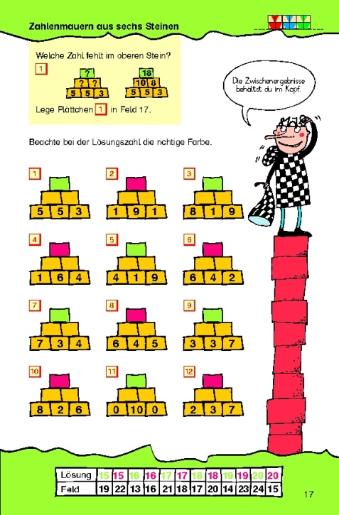 Mit neueren Aufgabenformen wie Zahlenmauern, Rechentafeln und Rechendreiecken werden aktuelle didaktisch-methodische Erkenntnisse berücksichtigt.