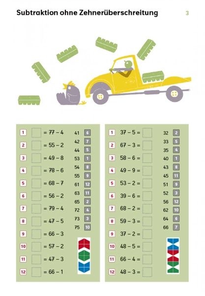 mit Additions- und Subtraktionsaufgaben im Zahlenraum bis 100.