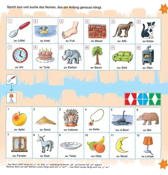 mini-Lük Heft Sprachtrainer 1, Phonologische Bewusstheit, Beschreibung: Übungen zur Phonologischen Bewusstheit ab 6 Jahren, Die genaue Kenntnis der Lautstruktur der gesprochenen Sprache - die phonologische Bewusstheit - ist die Voraussetzung für einen erfolgreichen Erwerb der Schriftsprache. Dieses Heft enthält zur Förderung der phonologischen Bewusstheit systematische Übungen zu Reimen, Silben und zum Heraushören und Unterscheiden von Sprachlauten und Wörtern. Alle Übungen sollten die Kinder besonders in der Anfangsphase zusammen mit pädagogischen Fachkräften oder mit gut informierten Eltern durch Vorsprechen, Nachsprechen, Mitsprechen, Schwingen mit den Händen und Heraushören durchführen. Nach Einführung in die Thematik ermöglicht das selbstkontrollierende LÜK-System den Kindern abwechslungsreiche und motivierende Wiederholungen. Zur Bearbeitung dieses Übungsheftes benötigen Sie das miniLük-Lösungsgerät.