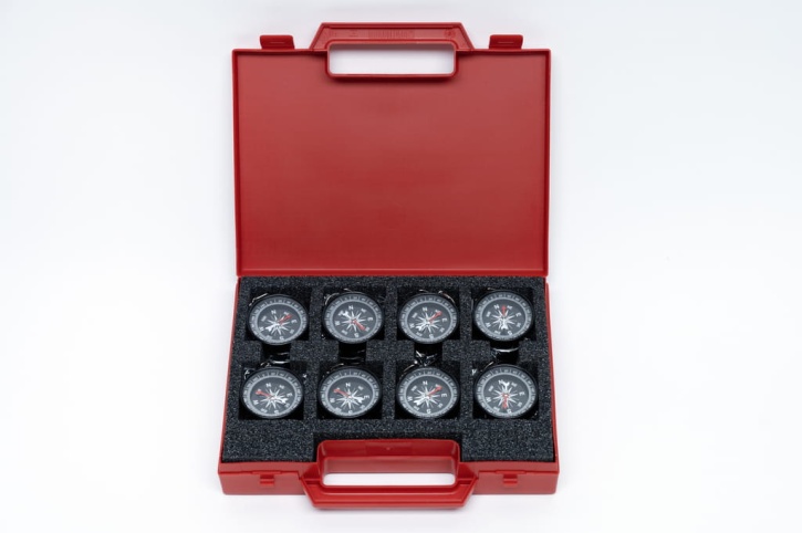 In diesem stabilen Koffer sind 20 Kompasse sicher untergebracht. Sie sind speziell für den Einsatz im Unterricht geeignet.