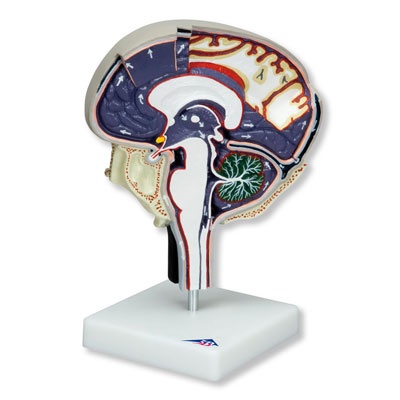 Das Modell weist eine klare Kennzeichnung der Bereiche der Gehirn- und Rückenmarksflüssigkeit