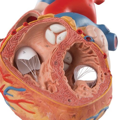 Dieses Herz in 2-facher Größe erleichtert die Identifikation der Strukturen und ist eine perfekte Hilfe in großen Klassenräumen oder Hörsälen.