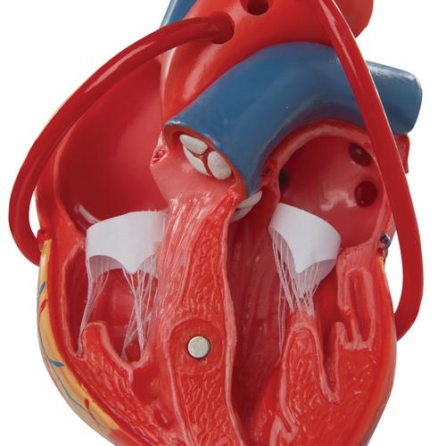 Klassik-Herz mit Bypass, 2-teilig, Mit diesem Modell können Sie die Anatomie des Herzens mit Kammern, Vorhöfen, Venen und Aorta detailliert studieren und demonstrieren. Die vordere Herzwand ist zur Ansicht der Kammern abnehmbar. Mit Venenbypässen zur rechten Koronararterie, zum Ramus interventricularis anterior und zum Ramus circumflexus der linken Koronararterie. Auf Stativ. Größe 19 x 12 x 12 cm,