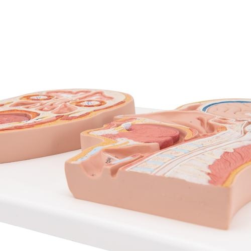Median- und Frontalschnitt des Kopfes, 2 Reliefmodelle auf Grundbrett,