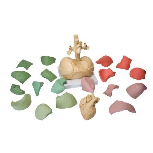 Dieses hochwertige Modell zeigt die Lungen samt Bronchialbaum sehr anschaulich in ihrer Nachbarschaft zumHerzen,