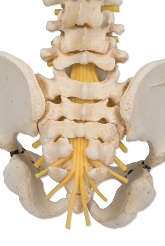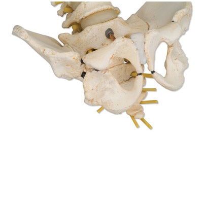 der Nervenwurzeln gefertigt aus flexiblem Material. An diesem Modell lässt sich besonders eindrucksvoll das charakteristische Stadium des Knochenwachstums für die Entwicklungsstufe eines 5 Jahre alten Kindes studieren.