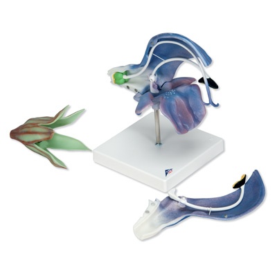 Das Modell des Modell Wiesen-Salbei (Salvia pratensis, Maedow clary) zeigt detailliert den Aufbau einer Einzelblüte mit Bestäubungsmechanismus in ca. 15-facher Vergrößerung.