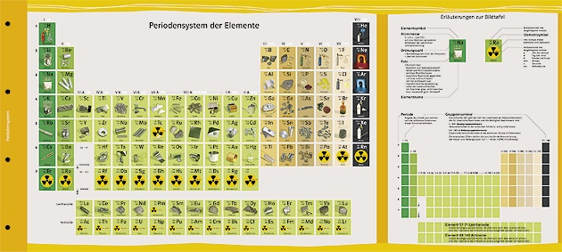 Chemie auf einen Blick, Periodensystem der Elemente, Chemiefolder Periodensystem der Elemente mit Fotos, Aufbau der Elektronenhülle, Kovalente Atomradien und Ionenradien, Wichtige physikalische Daten der Elemente, Highlights: - schneller und effizienter Überblick - immer griffbereit in der Schule und zu Hause - abwaschbares, unverwüstliches Material - mit seitlicher Lochung zum Abheften in den Ordner - vierfarbig, 6 A4-Seiten zum Aufklappen
