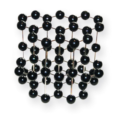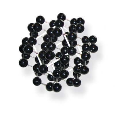 Satz mit 3 handlichen Modellen der Kohlenstoffkonfigurationen Diamant, Graphit und Fulleren zur Veranschaulichung