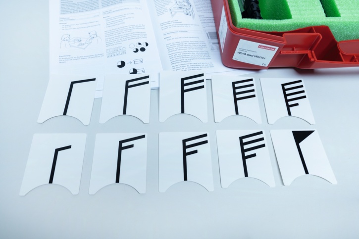 1 Windmessgerät (Anemometer), 5 beschreibbare Kunststoffplatten mit Klettpunkten