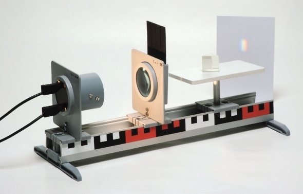 Profilschiene mit Stativmaterial, Bikonvexe u. bikonkave Linsen,