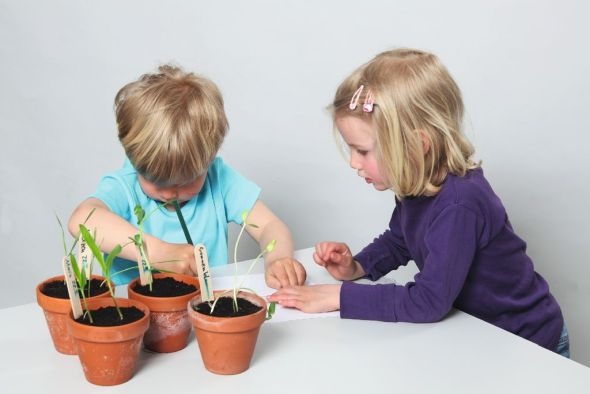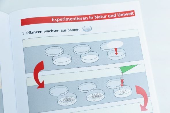 Kinder können anhand von Bildern die Versuche selbstständig durchführen und so z. B. entdecken, dass Pflanzen zum Licht wachsen.