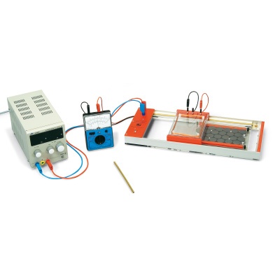 Das Induktionsgerät dient zur Demonstration und Untersuchung der Induktionsspannung, die infolge der Bewegung einer Spule auf einer Magnetplatte entsteht.