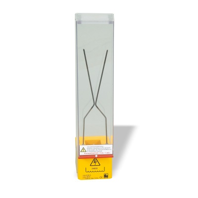 Sekundärspule zum Transformatorkern D (1000976_3B) zur Erzeugung hoher Spannungen, die Funkenüberschläge zwischen zwei abgeschirmten Hörnerelektroden hervorrufen können. Aus schlagfestem Kunststoff, berührungssicher.