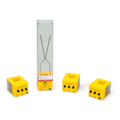Als Sekundärspulen führen die Spulen je nach Primärspannung Nieder- oder Hochspannung und dürfen dann nicht im Schülerexperiment eingesetzt werden.