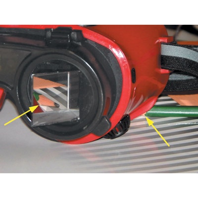 In einem vollständig abgeschirmten Brillengestell aus Weichplastik sind zwei um 360° drehbare gleichschenklige 90°-Prismen eingesetzt. Sie bewirken eine Seitenumkehr des Strahlenganges.