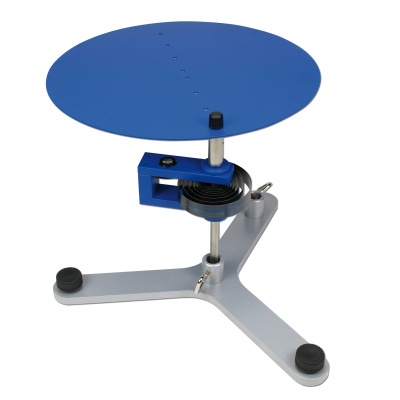 Drillachse zur Untersuchung von Drehschwingungen und zur Bestimmung von Trägheitsmomenten verschiedener Probekörper aus der Schwingungsdauer. Mit kugelgelagerter Welle, Schneckenfeder und Haltestab. Als Probekörper dienen ein Querstab mit verschiebbaren Massestücken und eine Kreisscheibe mit einer zentrischen und acht exzentrischen Bohrungen für Experimente zur Bestimmung von Trägheitsmomenten bei exzentrischen Drehachsen und zur Bestätigung des Steinerschen Satzes.