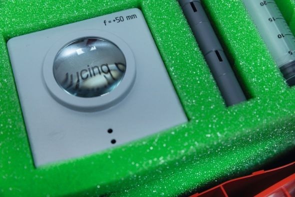 1 × Spiegel, Glas, 1 × Linse, f=+50 mm, 1 × Kunststofftrichter