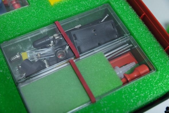 1 × Färbemittel, rot, 1 × Hebelschalter, einpolig, 1 × Kupferdraht mit Isolierung
