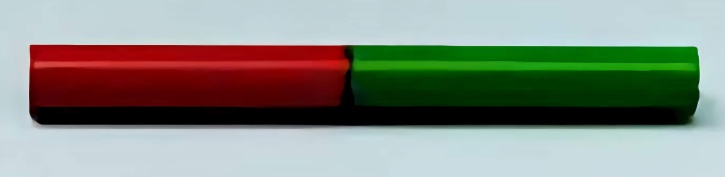 Je zur Hälfte rot und grün lackiert.
