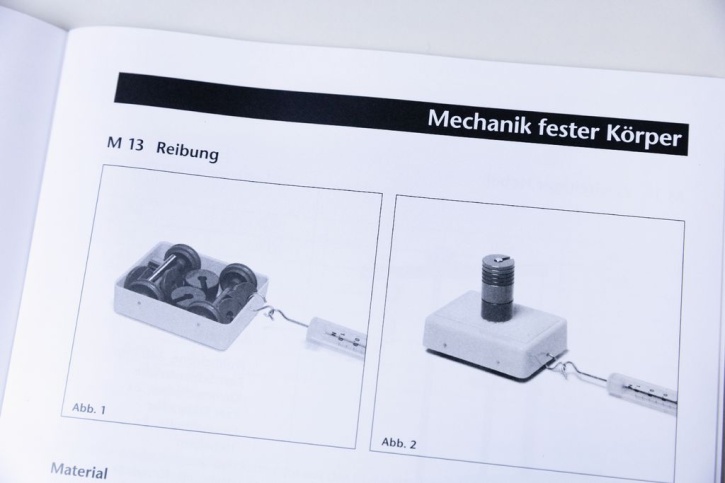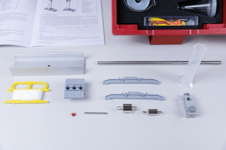 Mehr als 50 Einzelteile sind in zwei stabilen Kunststoffwannen (312 x 427 x 75 mm) mit Schaumstoffeinsatz und transparentem Deckel untergebracht.Der Schülerexperimentier-Gerätesatz Mechanik 1 wird mit einer ausführlichen Versuchsanleitung und Lehrerhandreichung geliefert.