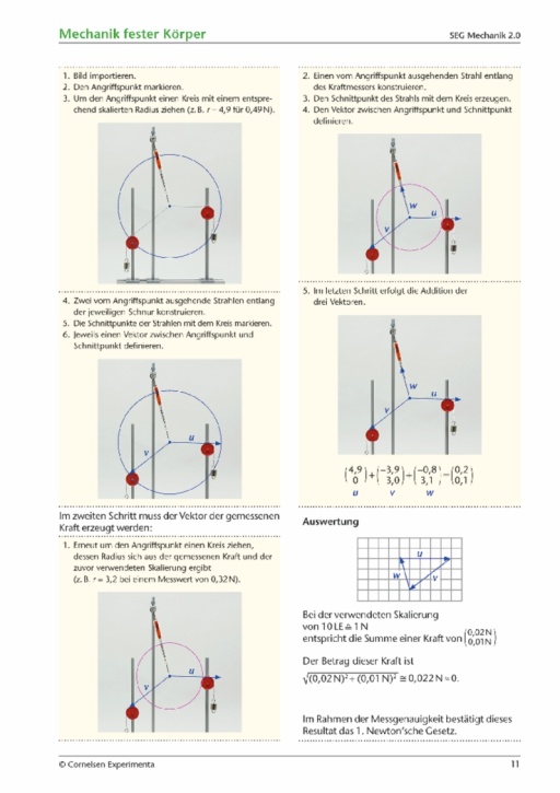 • Einführung der Vektoraddition bei der Überlagerung von Kräften. Die Auswertung mit Geometriesoftware wird in der Anleitung erklärt.