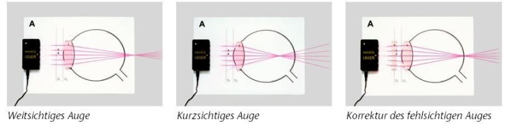 13 - Modell des kurzsichtigen menschlichen Auges, Korrektur