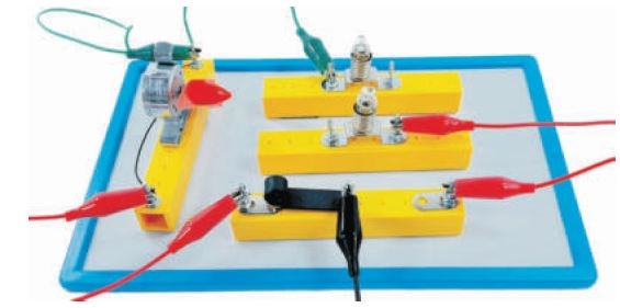 Die Baugruppen sind magnethaftend. Die Experimente werden platzsparend auf der Arbeitstafel im Kasten aufgebaut.