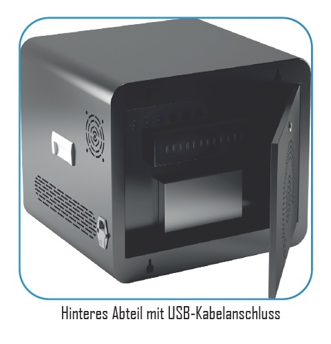 Ladebox für das Aufbewahren, Transportieren und Laden von bis zu 12 Tablets