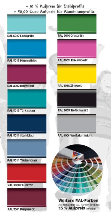 Bei Bestellung von Sonderdekoren und Sonderfarben erhalten Sie eine gesonderte Auftragsbestätigung mit Ihren individuellen Preisen.