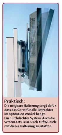 Mit einer bis 15° neigbarer Universalmontagehalterung für LCD- und Plasmamonitore.