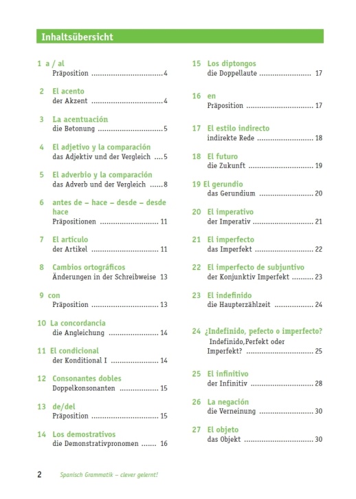Spanisch Grammatik clever gelernt -- Grammatik-Grundlagen - übersichtlich und anschaulich: Das Heft umfasst die gesamte lateinische Grammatik. Alle sprachlichen Besonderheiten sind systematisch aufbereitet. Alle Fachbegriffe sind erklärt und durch Beispiele veranschaulicht. Auf Übersichtlichkeit ist besonderer Wert gelegt. Jede Seite stellt einen in sich geschlossenen Lernabschnitt dar. Inhaltsverzeichnis, Register und Verweise erleichtern das Nachschlagen und ermöglichen einen schnellen Überblick. Die clevere Hilfe für Schule und zu Hause. 978-3-940257-08-6