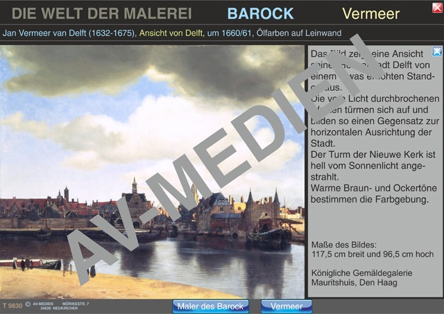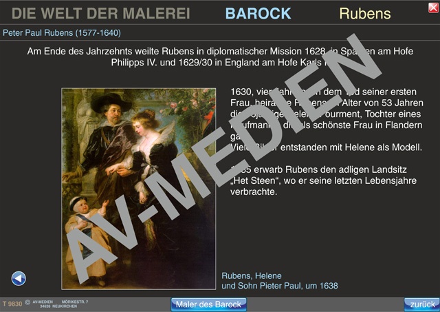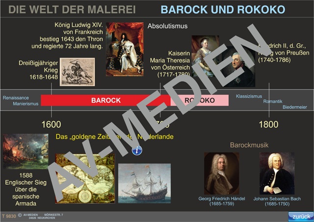 Digitale Folien auf CD - Barock und Rokoko - CD mit interaktiven PDF-Mediendateien / Schullizenz, - Digitale interaktiver Tafelbilder, - Inhalt der CD: - Barock- und Rokokomaler mit ihren Hauptwerken, jeweils mit interaktiven Infotexten zu Leben und Werk der Künstler. Bildgalerien zeigen die Vielfalt der Epoche und weitere Werke der Maler. - Interaktive Infotexte zu den Gemälden vermitteln Hintergrundwissen. - 2 interaktive Lernquiz prüfen und festigen das Wissen über die Malerei des Barocks und des Rokokos. Zur Präsentation wählen Sie gezielt eine Epoche, einen einzelnen Künstler oder ein bestimmtes Gemälde. Die CD ist so aufgebaut, dass Ihre Schüler am PC oder am interaktiven Whiteboard auch selbständig damit arbeiten können. - HINWEIS Einstellungen in Adobe Reader: Zur optimalen Projektion der digitalen Folien wählen Sie den Vollbild-Modus (über Menü oder Tastenkombination STRG + L). Blättern Sie vorwärts und rückwärts mit den Pfeiltasten oder mit der linken und rechten Maustaste. Verlassen des Vollbild-Modus: Esc-Taste. -- URHEBERECHTSHINWEIS Die Inhalte dieser CD sind urheberrechtlich geschützt. Jede Nutzung unterliegt den geltenden Urheberrechts- und Schutzgesetzen. Der Nutzer verpflichtet sich, diese anzuerkennen und einzuhalten. Dazu gehört insbesondere das Verbot der Vervielfältigung und Nutzbarmachung der Materialien für Dritte. Dieses Verbot schließt auch den elektronischen Versand an Dritte sowie die Bereitstellung der Inhalte im Internet ein. Zuwiderhandlungen können Schadensersatzforderungen nach sich ziehen. Kopiervorlagen und Lehrerbegleittexte dürfen im Rahmen des Unterrichts ausdruckt werden. -- verwandte Stichworte: Folienmappe, Folienordner, Overheadfolien, Folienbuch, Überlegfolien
