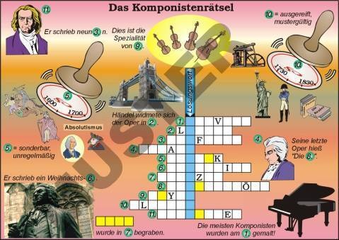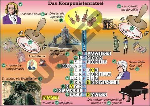 2. Das Komponistenrätsel: Rätsel und Lösung, 4 Folien, 3 Kopiervorlagen, Lehrerbegleittext,